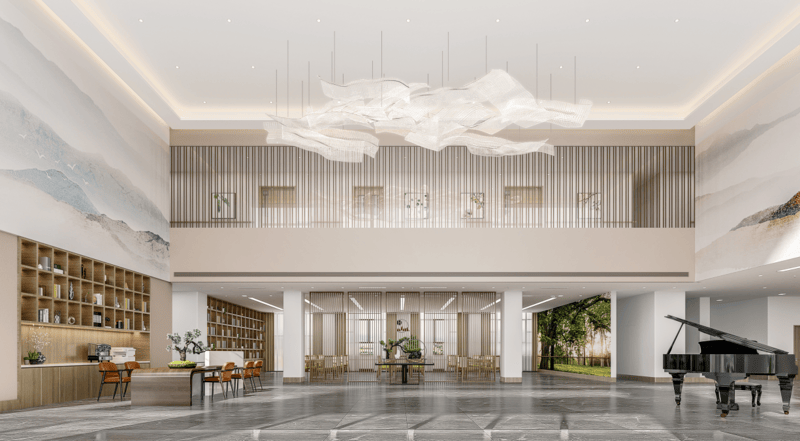 市大兴区中晟百晨养老院院内采用U字型天井结构。收住对象:高龄自理、术后康复、失能失智、沉疾照顾,